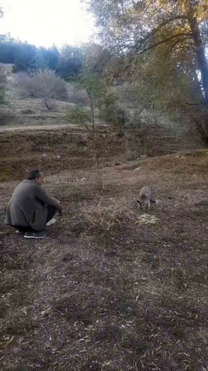 Yozgat’ta bir vatandaş, yanına gelen tilkiyi elleriyle besledi.