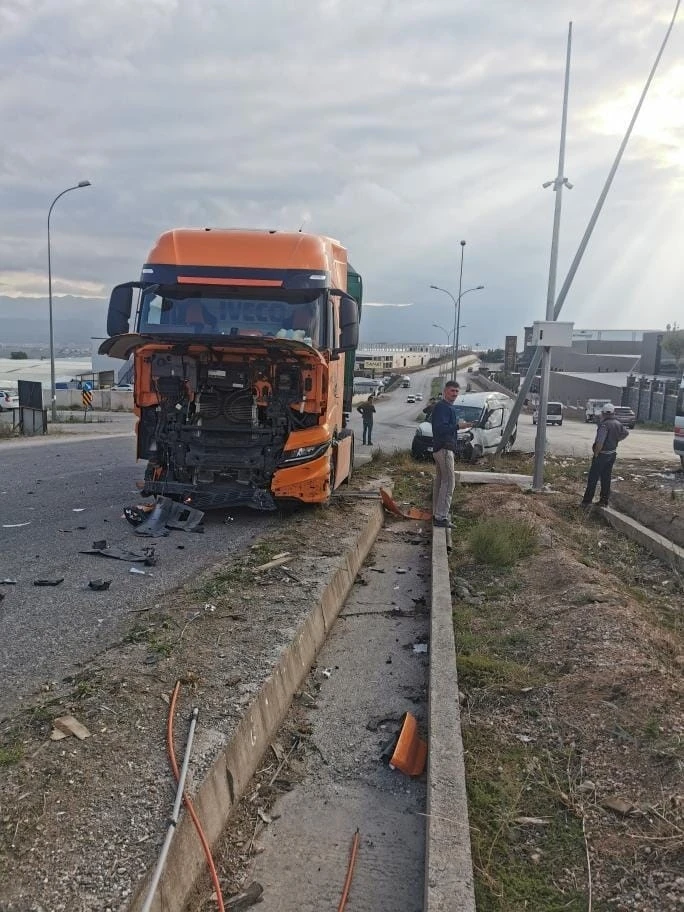 Kaza, Hamzabey İnegöl Mobilya İhtisas Organize Sanayi Bölgesi’nde meydana geldi. Emirhan Ö. (30) yönetimindeki 16 ARN 232 plakalı hafif ticari araç ile Ertan S. (44) idaresindeki 16 ER 344 plakalı tır çarpıştı. Çarpmanın etkisiyle araçlar savrulurken, her iki aracın sürücüsü de yaralandı. Kaza yerine sevk edilen ambulansla İnegöl Devlet Hastanesi’ne kaldırılan 2 yaralının sağlık durumunun iyi olduğu öğrenildi. Kaza anı bir iş yerinin güvenlik kamerasına yansıdı.