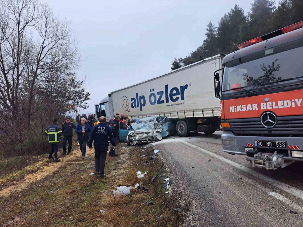 Tokat-Niksar karayolunda meydana gelen trafik kazasında 2 kişi hayatını kaybederken 1 kişi de ağır yaralandı. Kaza 12.45 sıralarında Tokat-Niksar karayolu Dönekse mevkiinde meydana geldi. İddiaya göre Tokat’tan Niksar istikametine gitmekte olan A. T. idaresindeki 06 EJR 074 plakalı çekici tır ile karşı yönden gelen ve Ayşe Yılmaz’ın kullandığı 23 ADY 976 plakalı Opel marka otomobil havanın yağışlı olması nedeniyle kayganlaşan yolda sürücünün direksiyon hakimiyetini kaybetmesi sonucu çarpıştı. Kazayı gören vatandaşların ihbarı üzerine olay yerine sağlık, polis ve itfaiye ekipleri sevk edildi. Araç trafiği kontrollü bir şekilde sağlanırken itfaiye ekipleri otomobilde sıkışan bir kişiyi çıkarttı. Kazada otomobil şoförü Ayşe Yılmaz (43) ile birlikte İlknur Karabulut (23) hayatını kaybederken, Z. A. isimli kişi ağır yaralı olarak Niksar Devlet Hastanesine kaldırıldı. Tır sürücüsü kazayı yara almadan atlatırken kazayla ilgili inceleme başlatıldı.
