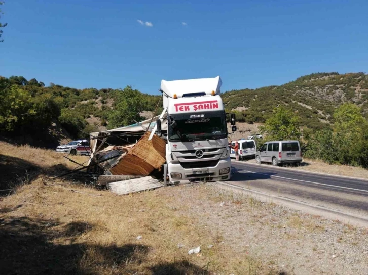 Tokat’ın Niksar ilçesinde kontrplak yüklü tırın devrilmesi sonucunda 1 kişi yaralandı.