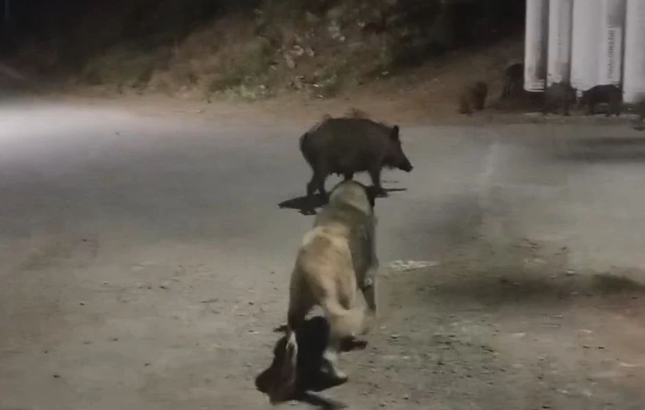 Tunceli merkez Atatürk Mahallesi’ne yavrularıyla inen yaban domuzları çöp konteynerlerinden karınlarını doyurdu. Yaban domuzlarını rahatsız eden tek şey ise sokak köpekleri oldu. İri bir yaban domuzu köpekleri bölgeden uzaklaştırırken ötekiler karınlarını doyurmaya devam etti. O anlar ise Hasan Bıra’nın cep telefonu kamerasıyla kayıt altına alındı. Karınlarını doyuran yaban domuzları daha sonra ormanlık alana giderek gözden kayboldu.