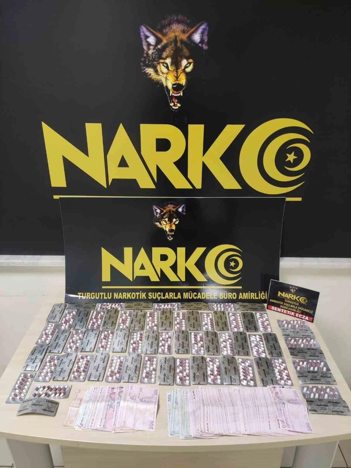 Turgutlu Cumhuriyet Başsavcılığı koordinesinde yürütülen soruşturma kapsamında, Narkotik Suçlarla Mücadele Şube Müdürlüğü’ne bağlı Turgutlu Narkotik Suçlarla Mücadele Büro Amirliği ekiplerince sokak çalışmaları gerçekleştirildi. "Uyuşturucu veya Uyarıcı Madde İmal ve Ticareti" yapan şahıslara yönelik yapılan çalışmalar sonucunda Y.S. (19) ve E.S. (23) yakalandı. Şahısların üzerlerinde ve araçlarında yapılan aramalarda 64 blister halinde toplam 922 adet sentetik ecza ile uyuşturucu madde ticaretinden elde edildiği değerlendirilen 45 bin 970 TL nakit para ele geçirildi.