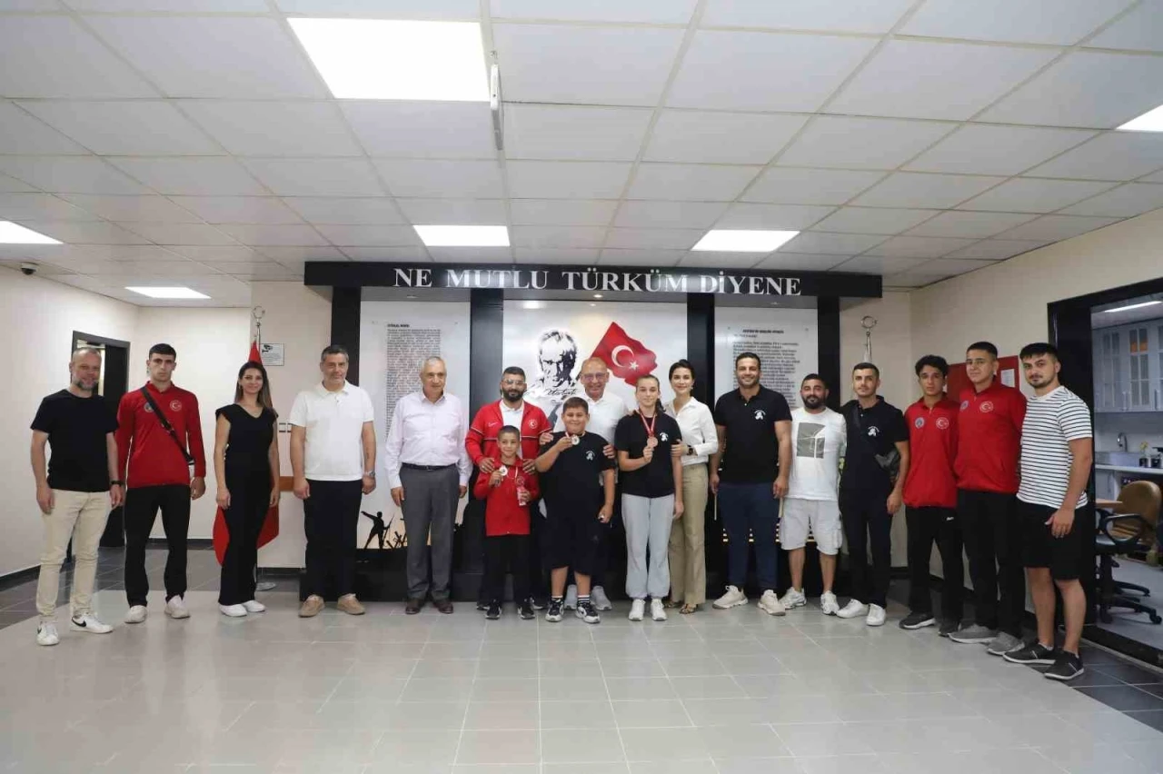 Türkiye Şampiyonası’nda serbest stil U10 (27 kg) kategorisinde Türkiye Şampiyonu olan Mahmut Acar, U10 (68 kg) kategorisinde Türkiye 2’ncisi olan İsmet Efe Şimşek ve Kadınlar Türkiye Şampiyonası U14 kategorisinde Türkiye 3’üncüsü olan Ceylin Yıldırım, antrenörleri Eyüp Sayan ve Caner Kızılkurt ile birlikte Başkan Akın’a teşekkür ziyareti gerçekleştirdi.