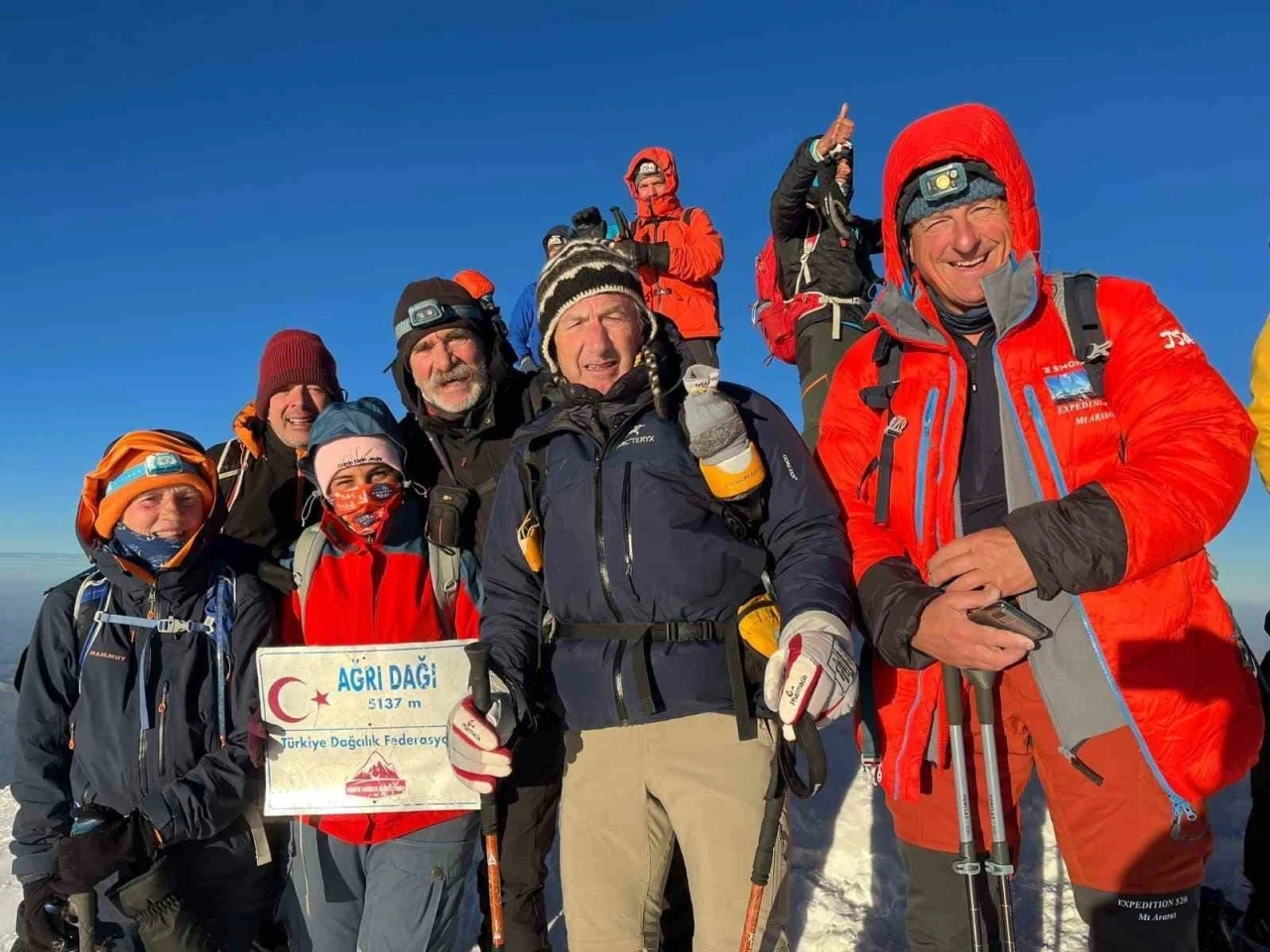 Dağcılar, zorlu hava şartları ve karla kaplı araziye rağmen başarılı bir şekilde zirveye ulaşarak, Ağrı Dağı’nın sunduğu doğal güzellikleri keşfetme fırsatı buldu.