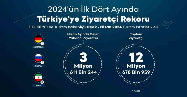 Türkiye, yılın ilk 4 ayında 12 milyon 678 bin 959 ziyaretçi ağırladı.
