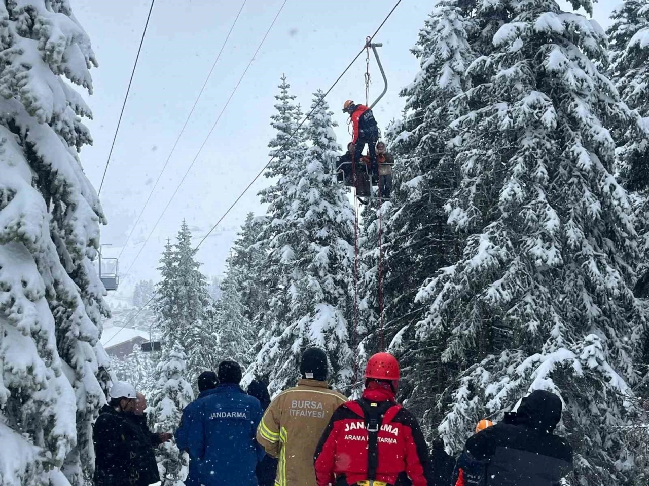 Kış turizminin merkezi Uludağ’daki Birinci Oteller Bölgesi’nde faaliyet gösteren Fahri Otel telesiyejinde meydana gelen teknik arıza nedeniyle tellerde mahsur kalan tatilcilerin tamamı kurtarıldı.