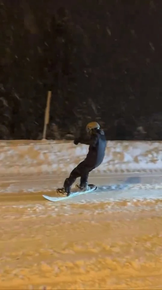 Kış turizminin önemli merkezlerinden biri olan Uludağ, beyaz gelinliğini giydi. Kar kalınlığının 30 santimetreyi geçtiğini gören vatandaşlar Uludağ’a akın etti. Kar yağışını fırsat bilen bir vatandaş aracın arkasına bağladığı halata tutunarak snowboard yaptı. Uludağ’ın virajlı yollarında snowboard ile kayan vatandaşı, arkadaşları cep telefonu kamerası ile kayıt altına alarak ölümsüzleştirildi.