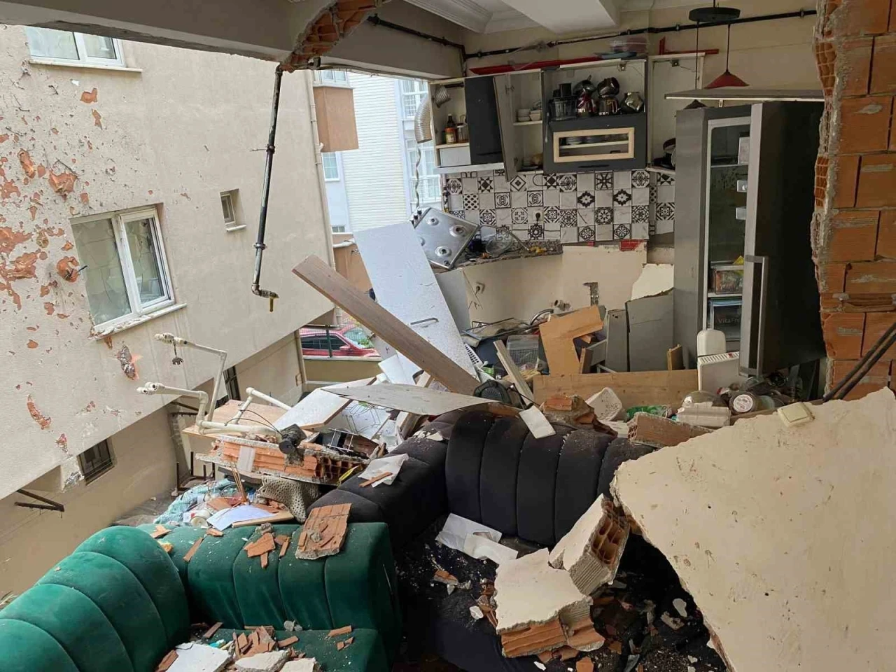 Ümraniye’de 4 katlı bir binanın 2’nci katında dün gece saatlerinde, doğal gaz kaynaklı olduğu değerlendirilen patlama meydana geldi. Patlamanın yıkıcı etkisi, günün aydınlanmasıyla ortaya çıktı.
