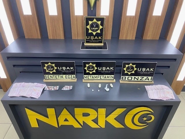 Uşak’ta polis ekiplerinin şüphe üzerine durdurduğu motosiklette uyuşturucu maddeler ele geçirildi. Gözaltına alınan 2 kişiden 1’i çıkarıldığı mahkemece tutuklandı. Edinilen bilgilere göre, İl Emniyet Müdürlüğü’ne bağlı ekiplerce, Kemalöz Mahallesi Atatürk Bulvarı üzerinde şüpheli bir motosikleti durdurdu. Motosiklette yapılan aramalarda 38 gram metamfetamin, 22 adet yeşil reçeteye tabi hap, bir miktar sentetik uyuşturucu madde ve uyuşturucu ticaretinden elde edildiği değerlendirilen 52 bin lira nakit para bulundu. Motosiklet sürücüsü T.Ç. ile yolcu B.T. gözaltına alındı. Emniyetteki işlemlerinin ardından adliyeye sevk edilen şüphelilerden T.Ç. tutuklanarak cezaevine gönderilirken, B.T. adli kontrol şartıyla serbest bırakıldı.