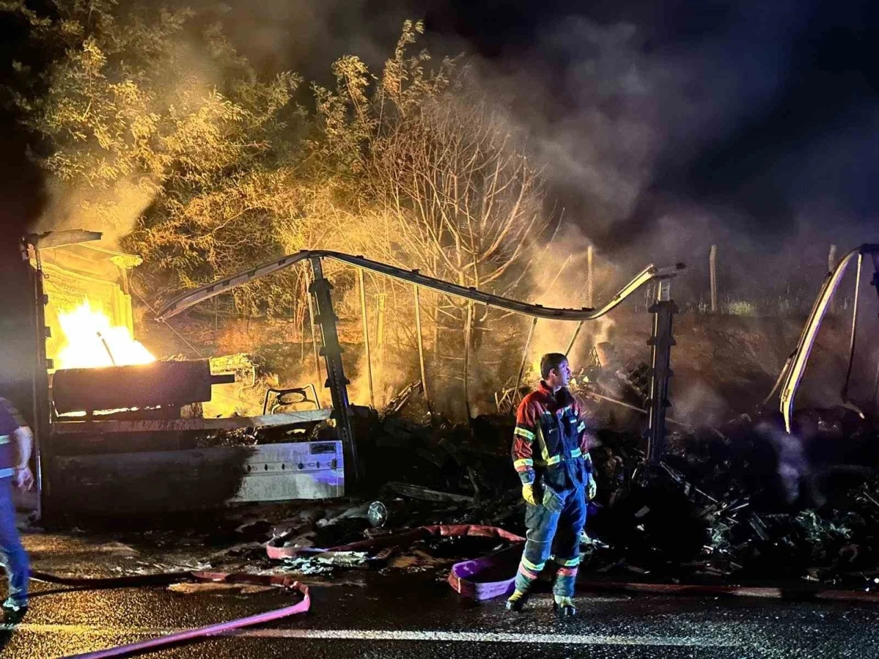 Uşak’ta seyir halinde iken tırın dorsesinde çıkan yangın, ekiplerin müdahalesi sonrası söndürüldü.
