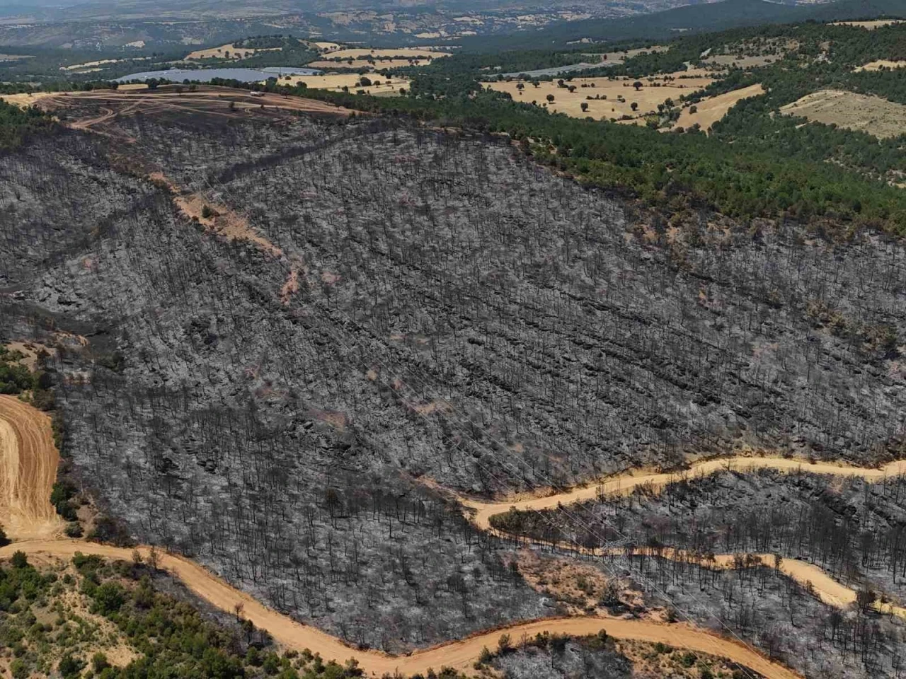 Ekiplerin çalışması sonucu yangın dün kontrol altına alınırken, yangında hasar gören alanlar ise dron ile görüntülendi.