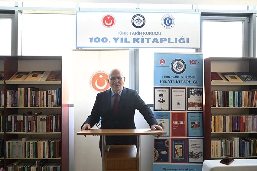 Türk Tarih Kurumu 22’nci "Türk Tarih Kurumu 100. Yıl Kitaplığı"nı Uşak Üniversitesi Prof. Dr. Fuat Sezgin Kütüphanesinde açtı. Törene Uşak Üniversitesi Rektörü Prof. Dr. Ekrem Savaş, Rektör Yardımcısı Prof. Dr. Lütfi Özav, Türk Tarih Kurumu Başkan Yardımcısı Doç. Dr. Yunus Pustu, fakülte dekanları, meslek yüksekokul müdürleri, araştırma merkezi müdürleri, daire başkanları ve akademisyenler katıldı. Törende yaptığı konuşmada, Prof. Dr. Ekrem Savaş, kütüphanelerin ve kitapların milletlerin geçmişindeki önemine değindi. Rektör Prof. Dr. Ekrem Savaş, "Bütün bilimlerin doğuşu Doğu’dandır. Bütün kütüphaneler Doğu’dan yayılmıştır. Kütüphaneler bizim için son derece önemli. Cumhuriyet’in köklü kurumlarından olan Türk Tarih Kurumu’na Cumhuriyetimizin kuruluşunun 100. yılı vesilesiyle üniversitemizde kurdukları ‘Türk Tarih Kurumu 100. Yıl Kitaplığı’ için teşekkür ederiz. Üniversitemize bağışlanan 1619 kitap ve 558 sayı dergi, araştırmacılar ve öğrencilere yeni vizyonlar açacaktır" dedi. Türk Tarih Kurumu Başkan Yardımcısı Doç. Dr. Yunus Pustu ise yaptığı konuşmada şunlara değindi: "Kurumumuz kuruluşundan günümüze kadar amaçları doğrultusunda sosyal bilgiler alanında faaliyet yürütmektedir. Bunlardan bir tanesi de dergi ve kitap basımıdır. Kurumumuz akademik bilgi oluşturmanın yanında bunun yayılmasını önemsemektedir. 2023 yılında bir proje başlattık. Bu projemiz ‘Türk Tarih Kurumu 100. Yıl Kitaplığı’dır. Bu kapsamda ülkemizdeki üniversitelerin tamamında bu kitaplığı kurmayı hedefliyoruz. Uşak Üniversitesi’nde açtığımız kitaplık 22’nci kitaplığımız. Kitaplık açma çalışmalarımız devam edecek. Rektörümüz Prof. Dr. Ekrem Savaş başta olmak üzere emeği geçen herkese teşekkür ederim.’’ dedi.