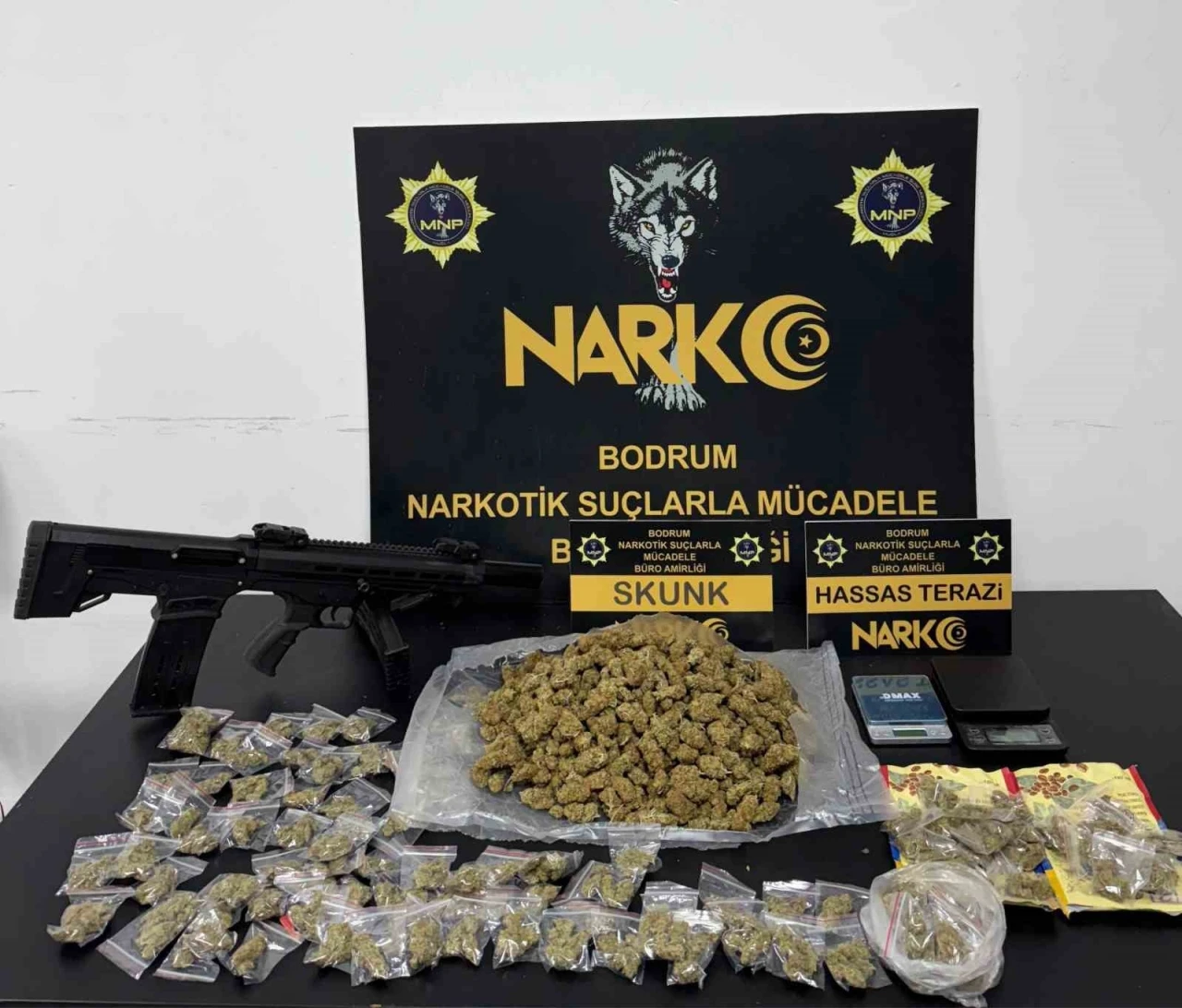 Muğla’nın Bodrum ilçesinde düzenlenen uyuşturucu operasyonunda 3 kişi yakalandı. Bodrum Narkotik Suçlarla Mücadele Büro Amirliği ekipleri tarafından uyuşturucu tacirlerine yönelik operasyon yapıldı. Edinilen bilgiye göre operasyon kapsamında yapılan ikamet aramasında, 1 kilo 118 gram skunk maddesi, 1 adet belgesiz yivsiz av tüfeği, 2 adet hassas terazi ve bin dolar suçtan elde edildiği değerlendirilen para ele geçirildi. Yakalanarak gözaltına alınan 3 şüpheli şahısda, işlemlerinin ardından sevk edildiği adli makamlarca tutuklanarak cezaevine gönderildi.