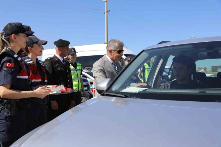 Durdurulan araçlardaki çocuklara araçta trafik kuralı ihlal edildiğinde çalarak ailelerini uyarmaları için kırmızı düdük hediye eden Vali Cahit Çelik, sürücüleri emniyet kemeri takma ve aşırı hız yapmama konusunda uyardı.