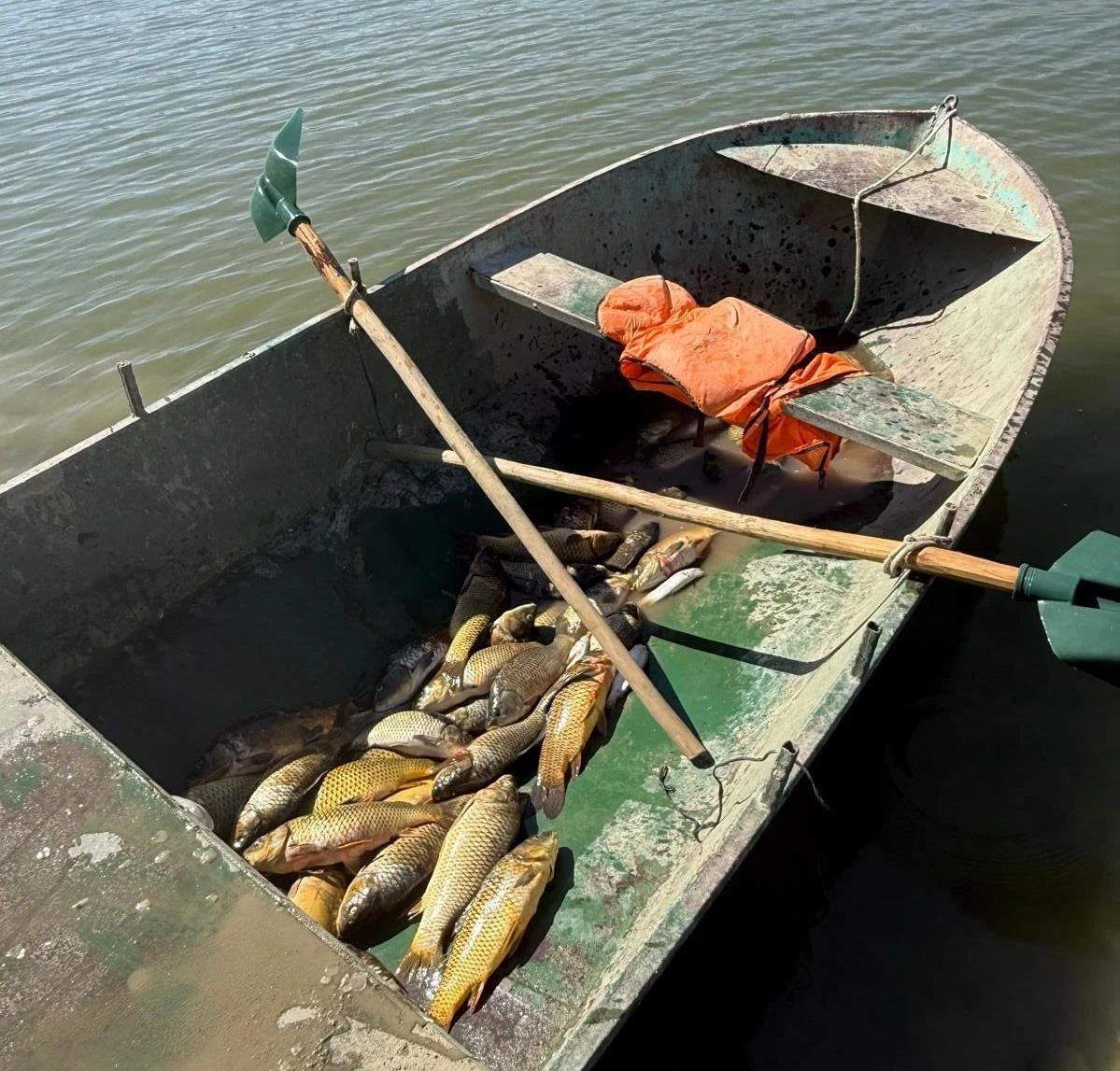 Van Valiliğinden yapılan açıklamada, "Van İl Jandarma Komutanlığınca Muradiye ilçesi Sarımemet Baraj Göleti’nde germe ağ kurmak suretiyle kaçak balık avı yapıldığı tespit edilmiştir. Kaçak avcılıkta kullanılan 4 adet farklı ebat ve uzunlukta toplam 200 metre germe ağ, kaçak olarak avlandığı tespit edilen 69 Sazan balığı ve 19 Alabalık cinsi su ürünü Muradiye İlçe Tarım ve Orman Müdürlüğü görevlilerine teslim edilmek üzere muhafaza altına alınmıştır. Germe ağ içerisinde takılı bulunan yaklaşık 250 canlı Sazan ve 65 Alabalık cinsi balığın doğaya tekrar kazandırılması maksadıyla Sarımemet Baraj Göleti’ne salımı yapılmıştır. Kaçak avcılık yaptığı tespit edilen 2 şahıs hakkında 1380 sayılı Su Ürünleri Kanunu kapsamında gerekli idari para cezası uygulanmak üzere tutanak tanzim edilmiş olup; Muradiye İlçe Tarım ve Orman Müdürlüğü su ürünleri görevlileri tarafından şahıslara 1380 SK. 36/k-1 maddesi uyarınca ayrı ayrı 12 bin 835 TL toplamda 25 bin 670 TL idari para cezası uygulanmıştır" denildi.