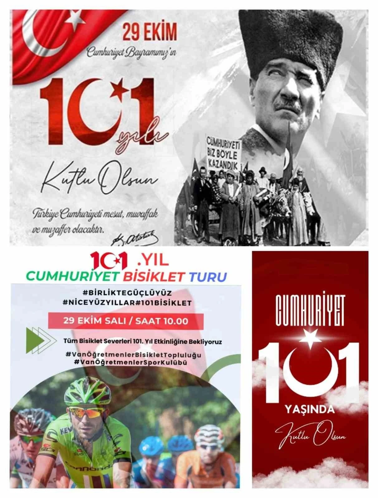 Van Öğretmenler Bisiklet Topluluğu, 29 Ekim Cumhuriyet Bayramı kutlamaları çerçevesinde 29 Ekim Salı günü Türkiye Cumhuriyeti’nin 101’inci yılı münasebetiyle ‘Cumhuriyetimizin 101. Yılında 101 Pedal’ etkinliği düzenliyor.