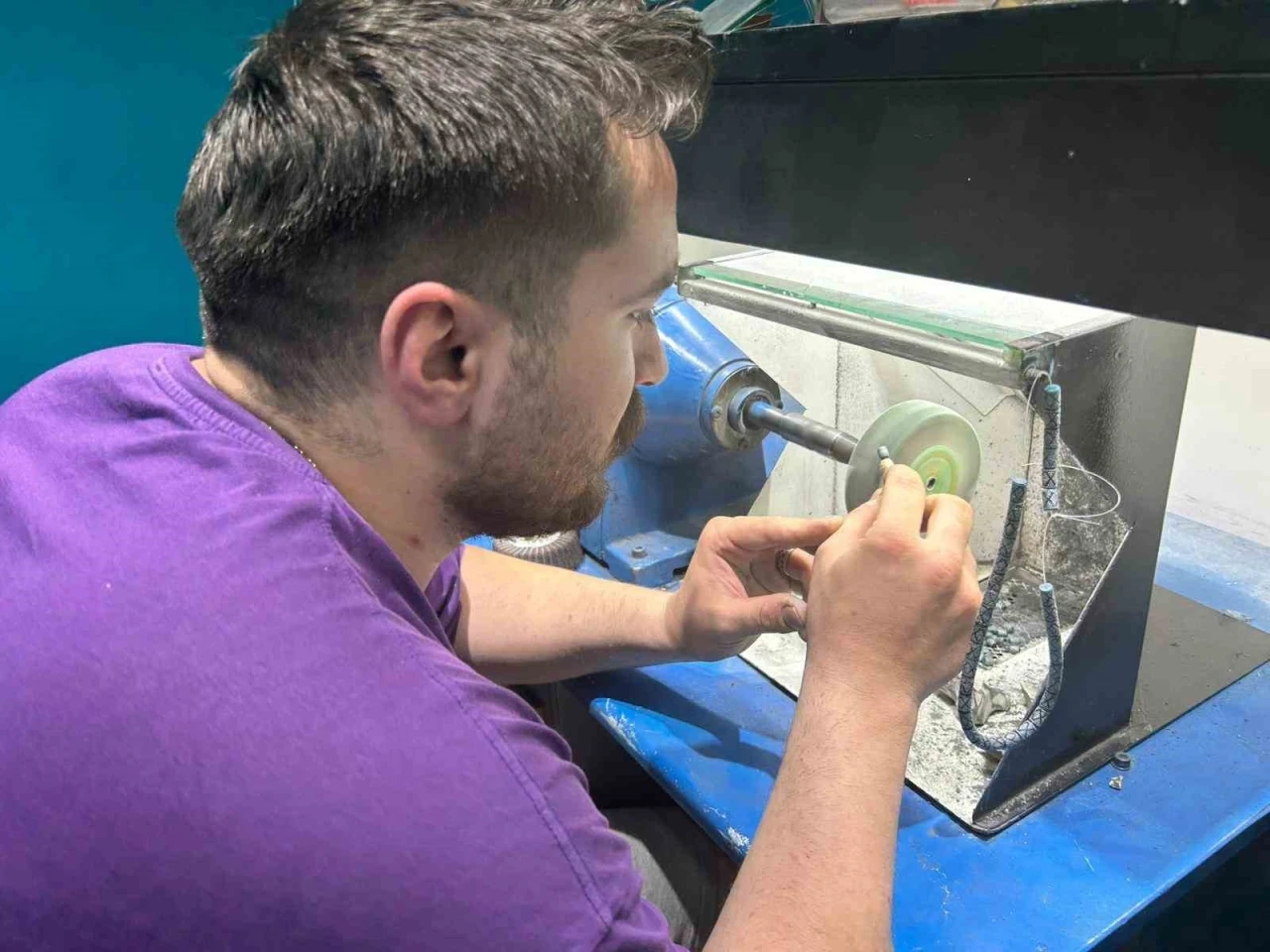 Yaklaşık 10 yıl önce tamamen kendi ilgisiyle başladığı gümüş kakma sanatını zamanla geliştirerek profesyonel hale getiren Berke Tomar, edindiği bilgi ve tecrübelerle Van’da özel bir atölye kurdu. Sabır ve incelik gerektiren bu geleneksel mesleği tutkuyla sürdüren genç usta, kehribar taşına hem makineyle hem de el emeğiyle küçük oyuklar açıyor. Ardından bu oyuklara yerleştirdiği gümüş kakma taneleriyle, her biri sanat eseri niteliğinde tespihler ortaya çıkarıyor.