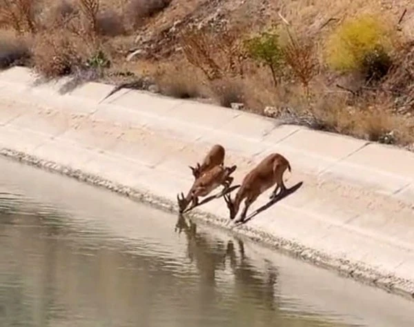 Malatya’nın Darende ilçesinde, nesli tükenme tehlikesi altında olan ve koruma altında bulunan yaban keçileri, sulama kanalında su içerken görüntülendi.