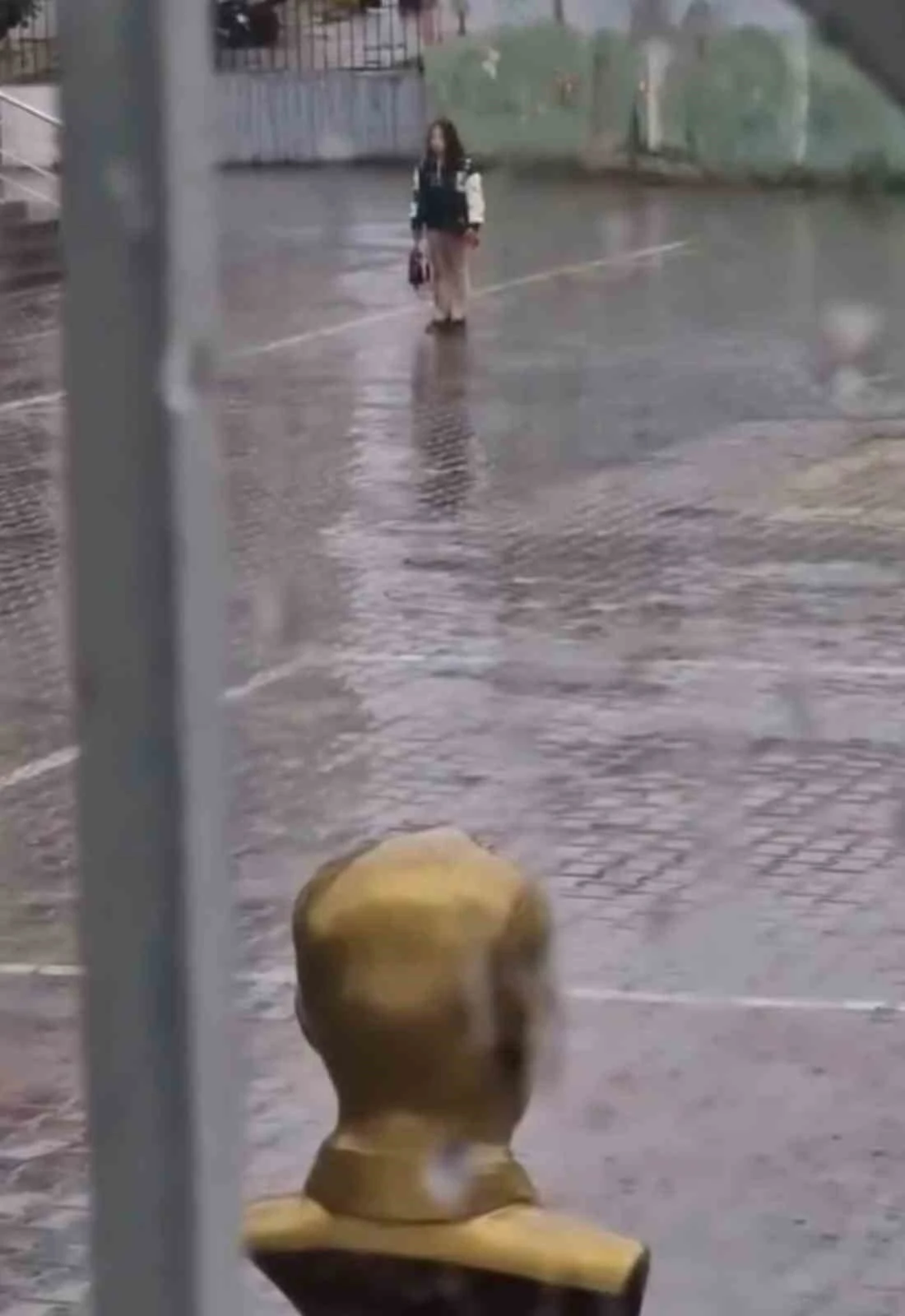 Iğdır’da dün haftanın ilk günü tüm okullarda olduğu gibi İnönü İlkokulu’nda da İstiklal Marşı okundu. Kentte etkili olan yağış nedeniyle marş, okulun hoparlör sistemi üzerinden tüm sınıflarda aynı anda okutuldu. Bu sırada derse geç kalan bir kız öğrenci, okul bahçesinde yağmurun altında durarak İstiklal Marşı’na eşlik etti. Marş bitene kadar yerinden ayrılmayan öğrencinin bu davranışı, öğretmenler ve öğrenciler tarafından izlendi. Yağmur altında İstiklal Marşı’nı okurken duygulandıran anlar cep telefonu kamerasına yansıdı.