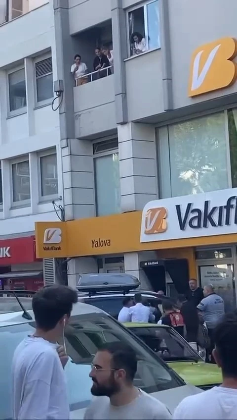 Edinilen bilgiye göre, Cumhuriyet Caddesi üzerinde faaliyet gösteren Vakıfbank Yalova Şubesi’nde gurbetçi bir vatandaş bankacılık işlemi gerçekleştirmeye çalıştı. İşlemin yapılmaması üzerine duruma sinirlenen vatandaş, yabancı plakalı otomobilini bankaya doğru sürdü. Kaldırıma çıkan otomobil sürücüsüne banka güvenlik görevlisi saldırmaya çalıştı. Güvenlik görevlisini çevredeki vatandaşlar güçlükle durdurdu.