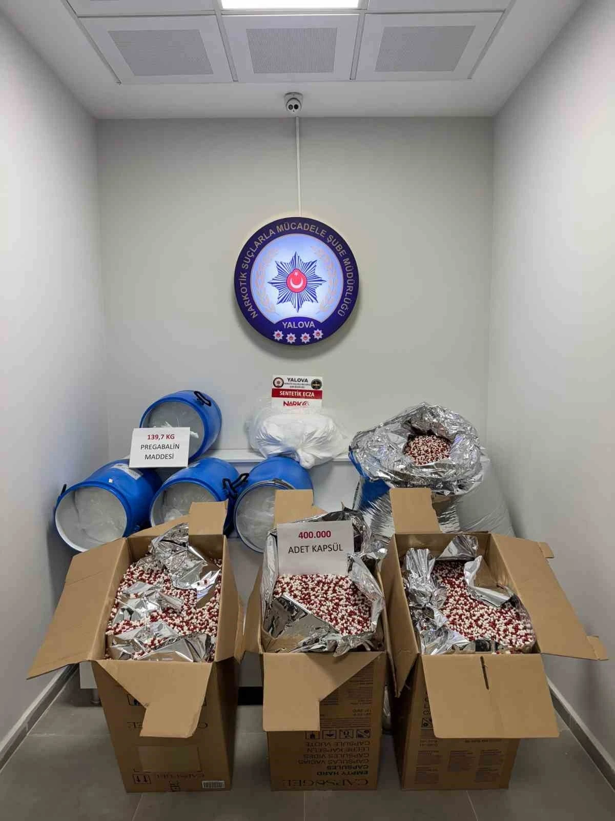 Alınan bilgiye göre, İl Emniyet Müdürlüğü Narkotik Suçlarla Mücadele Şubesi ekipleri, Yalova’ya seyir halinde olan 35 plakalı 2 araçta uyuşturucu madde olabileceğini değerlendirdi. Narkotik maddeler arama köpeği Zeytin eşliğinde şüpheli şahıslar ve araçlar üzerinde gerçekleştirilen aramalarda, 5 parça halinde toplam 139 kilo 700 gram sentetik ecza yapımında kullanılan pregabalin maddesini ve 4 parça halinde dolum yapılmaya hazır 400 bin adet sentetik ecza kapsülü ele geçirdi.