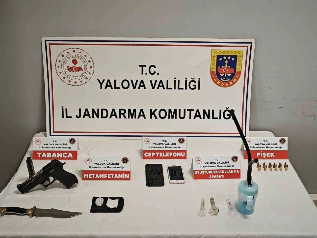 Alınan bilgiye göre, İl Jandarma Komutanlığınca, elde edilen bilgilerin değerlendirilmesi üzerine, Merkez, Çınarcık ve Termal ilçelerinde 5 şüphelinin üzerinde, araçlarında ve evlerinde arama gerçekleştirildi. Aramada 18 gram skunk, 12 gram metamfetamin, 2 gram esrar, 4 adet uyuşturucu kullanma aparatı, tabanca, 12 adet tabanca fişeği, 3 adet bıçak, 2 adet cep telefonu ele geçirildi. Jandarmadaki işlemlerinin ardından adliye sevk edilen şüphelilerde biri tutuklanırken 4 zanlı ise adli kontrol şartıyla serbest bırakıldı.