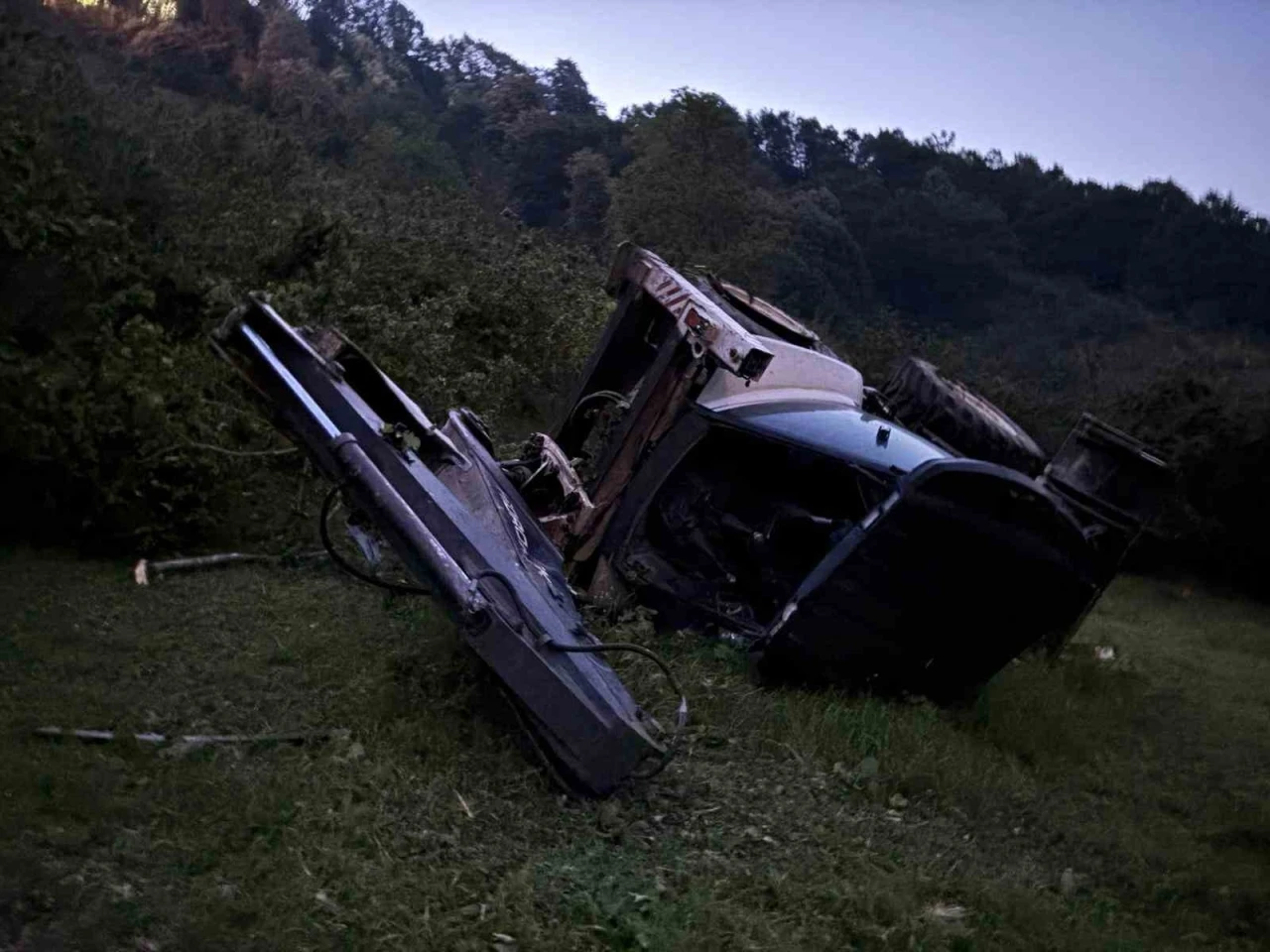 Sakarya’nın Hendek ilçesinde çalışma yapan bir iş makinesi yamaçtan yuvarlandı. Operatör, aracın kontrolünü kaybettiği anda atlayarak kazayı yara almadan atlattı.