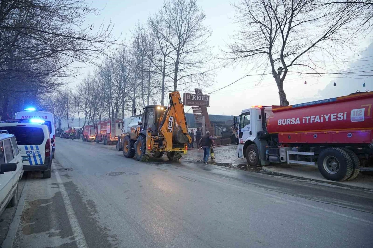 Bursa’da yangın çıkan iş yerinin çevresinde güvenlik önlemi alan polise saldıran 2 iş yeri sahibi gözaltına alındı.