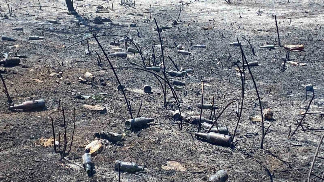 Kocaeli’nin Kartepe ilçesindeki otluk arazide çıkan yangın, itfaiye ekiplerince söndürüldü. Yangın sonrası araziye atılmış yüzlerce boş cam şişe dikkat çekti.