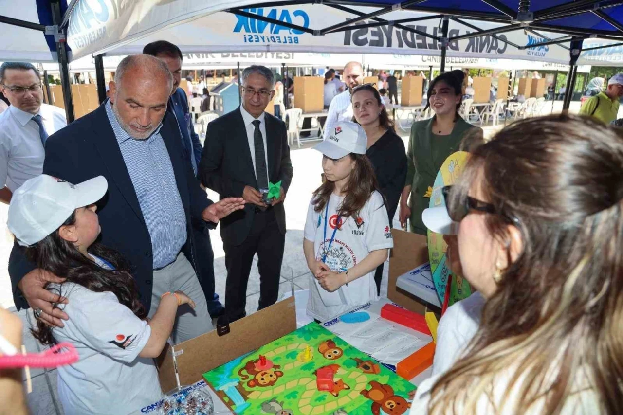 SAMSUN (İHA) – Samsun’un Canik Belediyesi ile Canik İlçe Milli Eğitim Müdürlüğü’nün düzenlediği bilim festivalinde öğrencilerin yapay zekâ araçlarını kullanarak hazırladığı 68 proje görücüye çıktı.