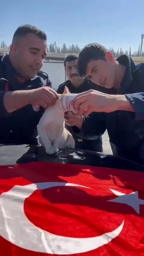 Antakya ilçesi Aksaray Mahallesi’nde kafası konserve kutusuna sıkışan kediyi gören vatandaşlar durumu itfaiye ekiplerine bildirdi. Yaramaz kediyi yakalayan itfaiye ekibi, hayvana zarar vermeden kutuyu çıkardı. Kutunun çıkarılmasıyla rahat nefes alan kedi, beslenerek doğaya bırakıldı.