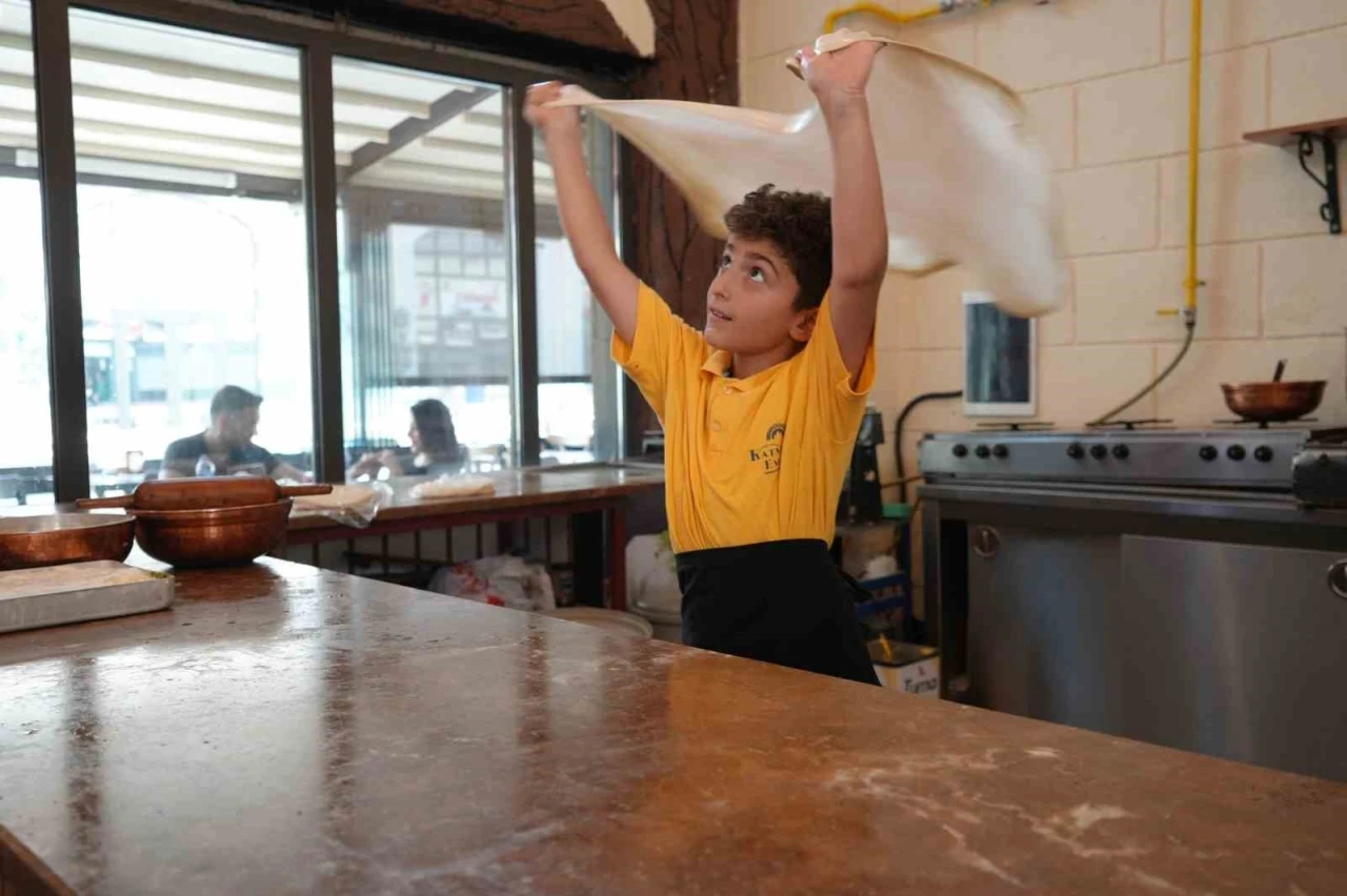 Gaziantep’te henüz 9 yaşındaki Ertuğrul Yılmaz, küçük yaşına rağmen hem mutfakta gösterdiği yetenekle hem de enerjisiyle dikkatleri üzerine çekiyor. Babasının yanında katmer yapmayı öğrenen Ertuğrul, kısa sürede çıraklıktan ustalığa giden yolda büyük bir adım attı. Şimdiden sosyal medyada paylaşılan videolarıyla binlerce kişiye ulaştı. Derslerinde gösterdiği başarıların yanı sıra bitmek bilmeyen enerjisiyle dikkat çeken Ertuğrul’un ailesi, bu enerjiyi daha verimli değerlendirmek istedi. Babasıyla birlikte katmer dükkanına gitmeye başlayan minik usta, kısa sürede işin inceliklerini öğrenmeye başladı. "En büyük hayalim, Osimhen’e katmer yapmak"