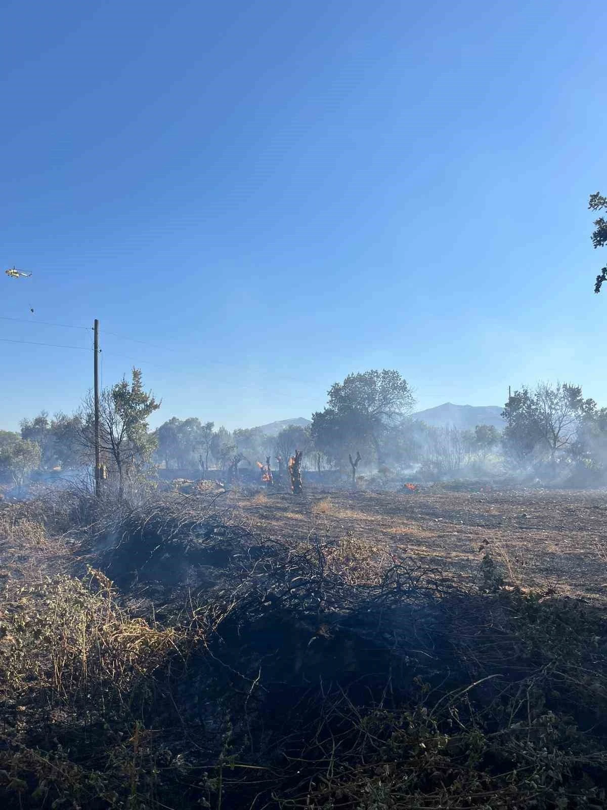 Muğla’nın Yatağan ilçesine bağlı Hacıbayramlar Mahallesinde bir tarlada meydana gelen yangın ekiplerin hızlı müdahalesi ile söndürüldü.