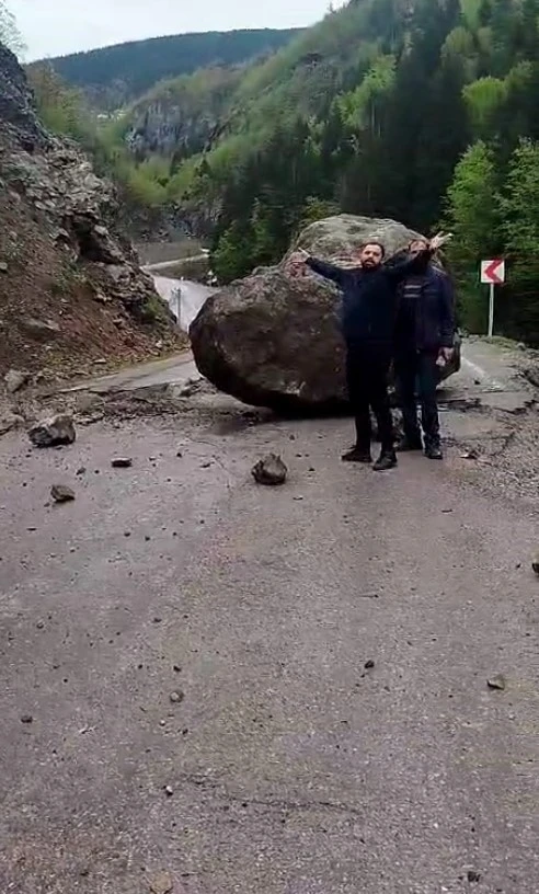 Gümüşhane’nin Kürtün ilçesinde bulunan Erikbeli Yaylası’na gitmek isteyen Nedim Güvendi ve arkadaşları Kale Mahallesi yol ayrımı mevkiinde devasa kaya kütlesinin altında kalmaktan son anda kurtuldu. Dağ yamacından kopan ve yolun ortasına düşen kayanın boyutu yaşanabilecek facianın boyutlarını gözler önüne sererken vatandaşlar yol güzergâhında önlem alınmadığını söyleyerek yetkililere çağrıda bulundular.