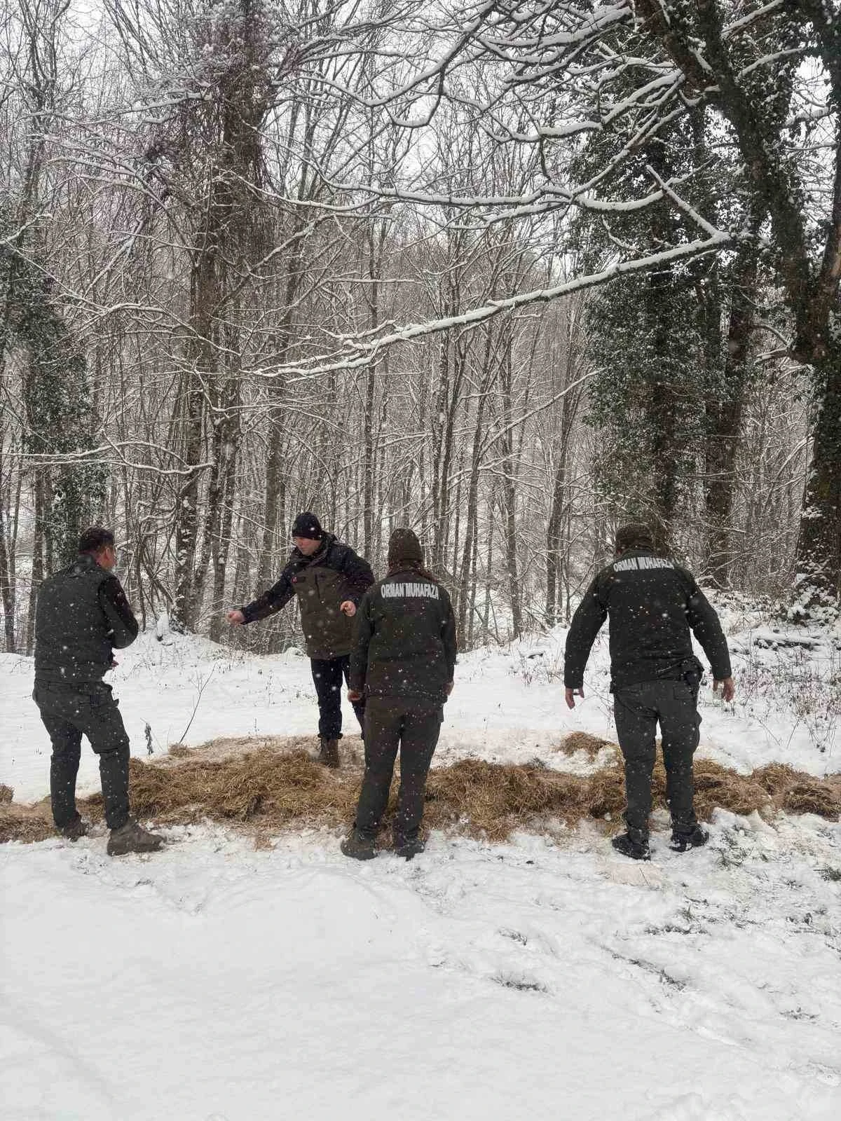 Karabük’ün Yenice ilçesinde zorlu kış şartlarında yaban hayvanları için doğaya yem bırakıldı.