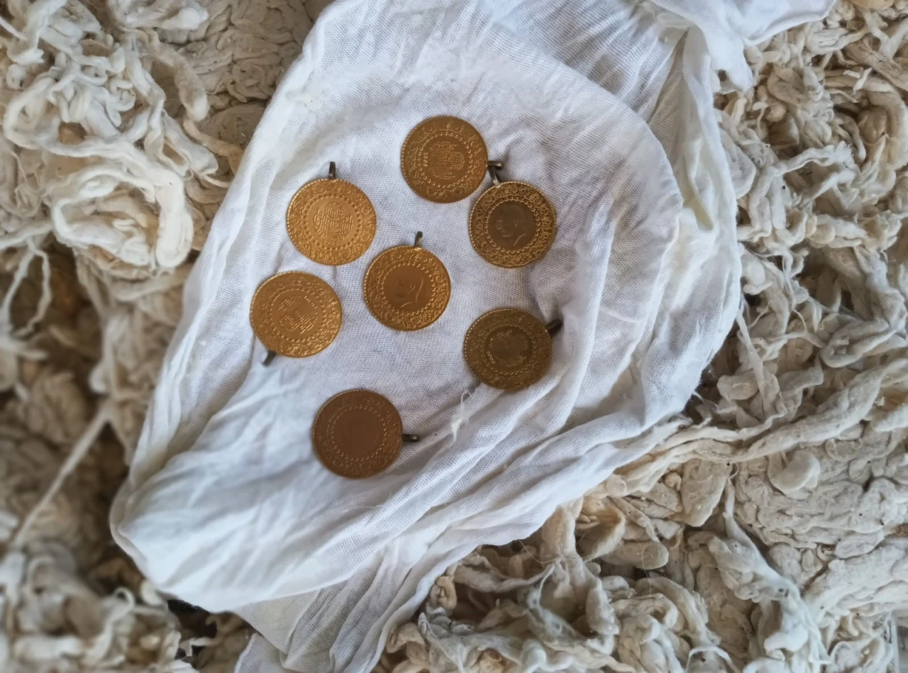 Kahramanmaraş’ta yenilenmesi için getirilen yastıktaki yünün içinden 7 adet Cumhuriyet altını çıktı.