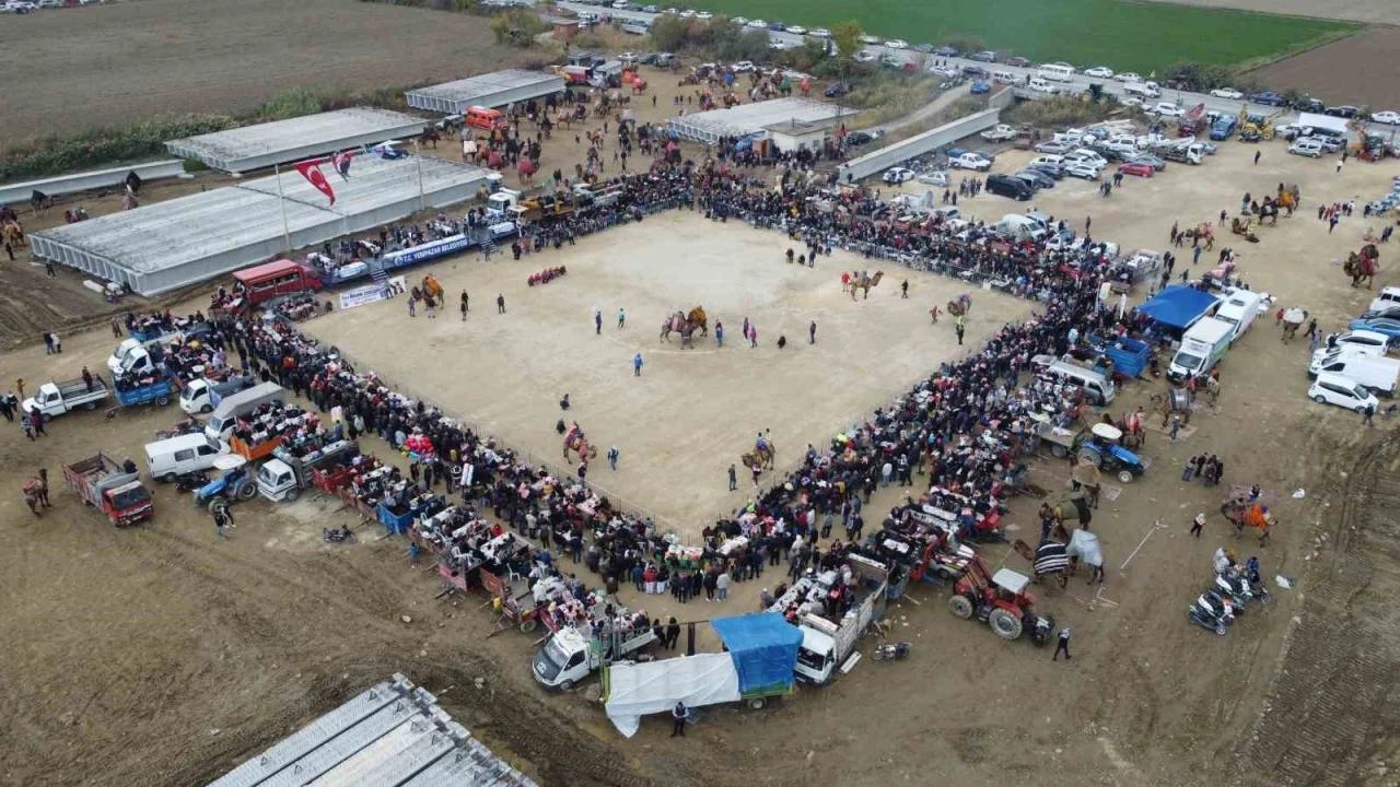 Aydın’ın Yenipazar ilçesinde geleneksel hale gelen ve 40.’sı gerçekleştirilen deve güreşi şenlikleri renkli görüntülere neden oldu. Ege, Marmara ve Akdeniz Bölgeleri’nin vazgeçilmez kültürel etkinliklerinden olan deve güreşi festivallerinde heyecan aralıksız şekilde sürüyor. Deveci Kültürü ve Deve Güreşleri Federasyonu (DEGÜF) tarafından 1 Aralık 2024 Pazar günü gerçekleştirilen Yenipazar 40. Geleneksel Deve Güreşi Şenlikleri renkli görüntülerle tamamlandı. Bölgenin namlı develeri ile kıran kırana güreş tutan konuk develer izleyiciyi coşturdu. Öğleden sonra başlayan yağmura rağmen bir süre daha devam eden güreşler yağmurun şiddetini artırması ile sonlandırıldı. “Tüm kültürel etkinliklerimizi en iyi şekilde yapacağız”