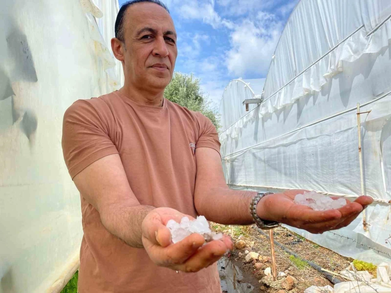 Ürünlü Mahallesi’nde cam serası ve ürünleri zarar gören çiftçilerden Arif Işık, "Doludan dışarı çıkamadık. Çok şiddetli yapıyordu. Sabah geldiğimizde seralarımızda zararı gördük. Kavun ve karpuzlarımız da zarar görmüş. Yaklaşık 5 dönüm seramda zarar var" dedi.