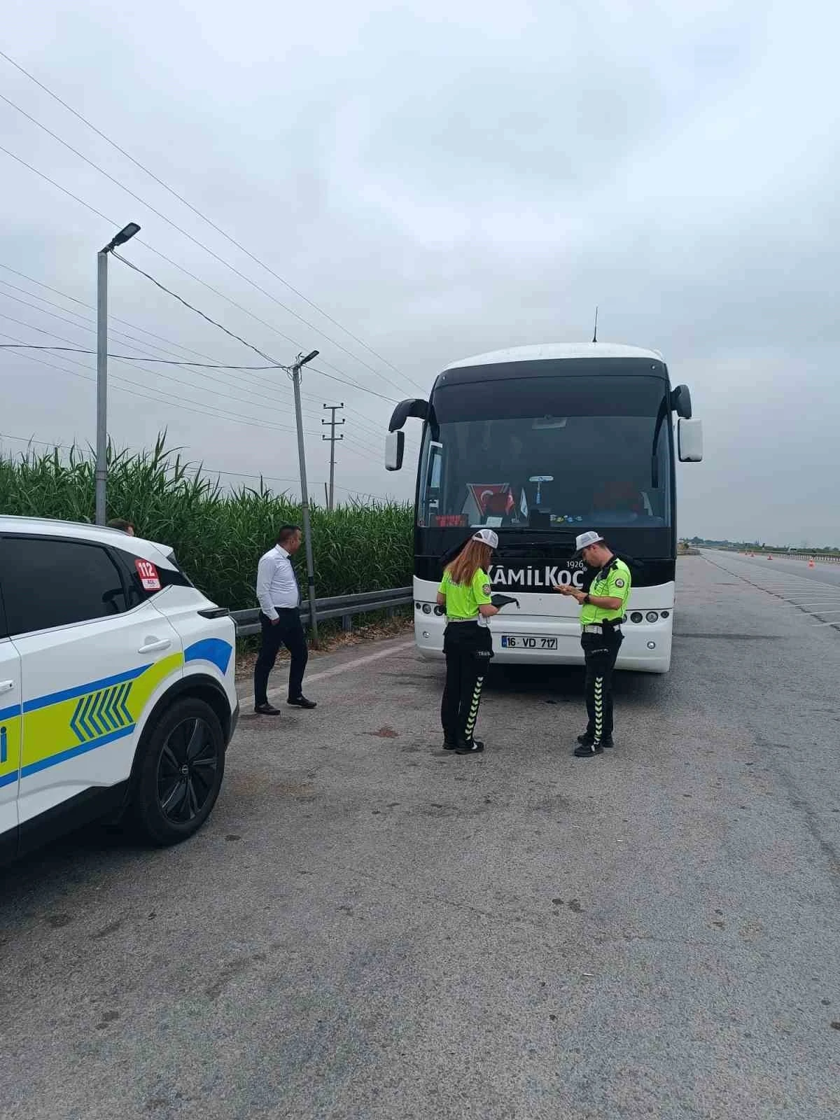 Bursa’nın Karacabey İlçesinde Bölge Trafik İstasyon Amirliği ekipleri, Bursa-İzmir ve Bursa-Çanakkale karayolu üzerinde şehirlerarası yolculuk yapan otobüslere yönelik denetimleri sıklaştırdı.