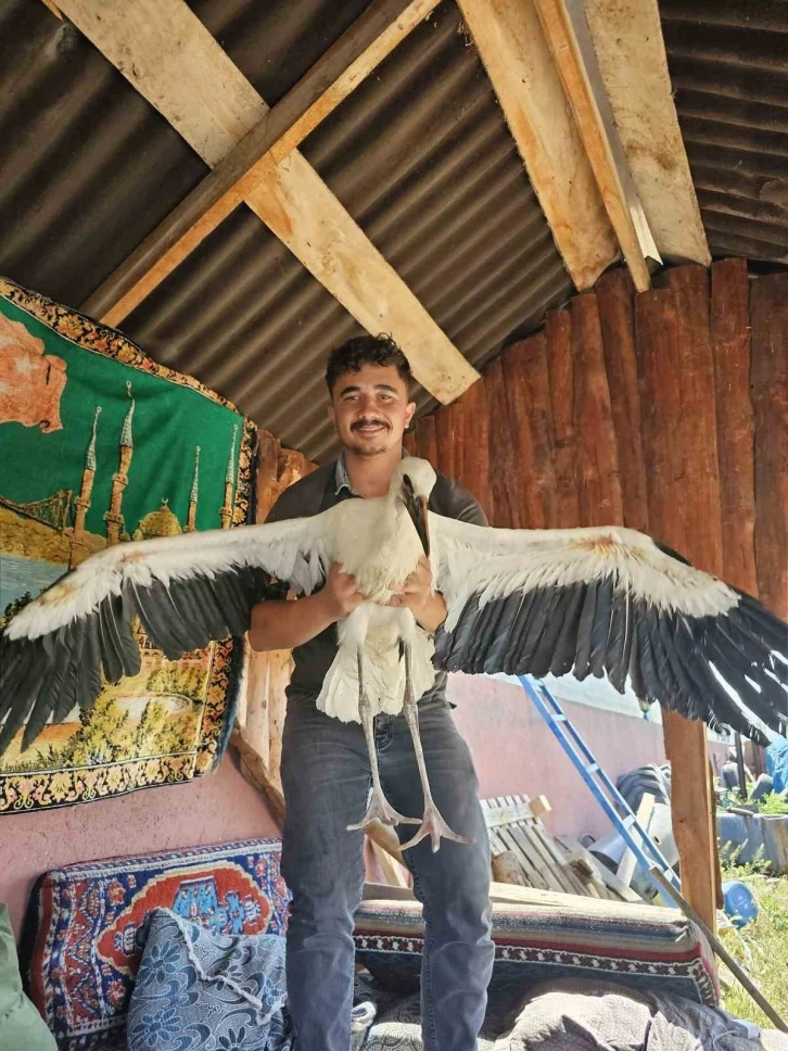 Iğdır’da bir vatandaşın yolda yaralı halde bulduğu yavru leyleği kendi çabalarıyla besleyip bakımını üstlenmesi takdir topladı.
