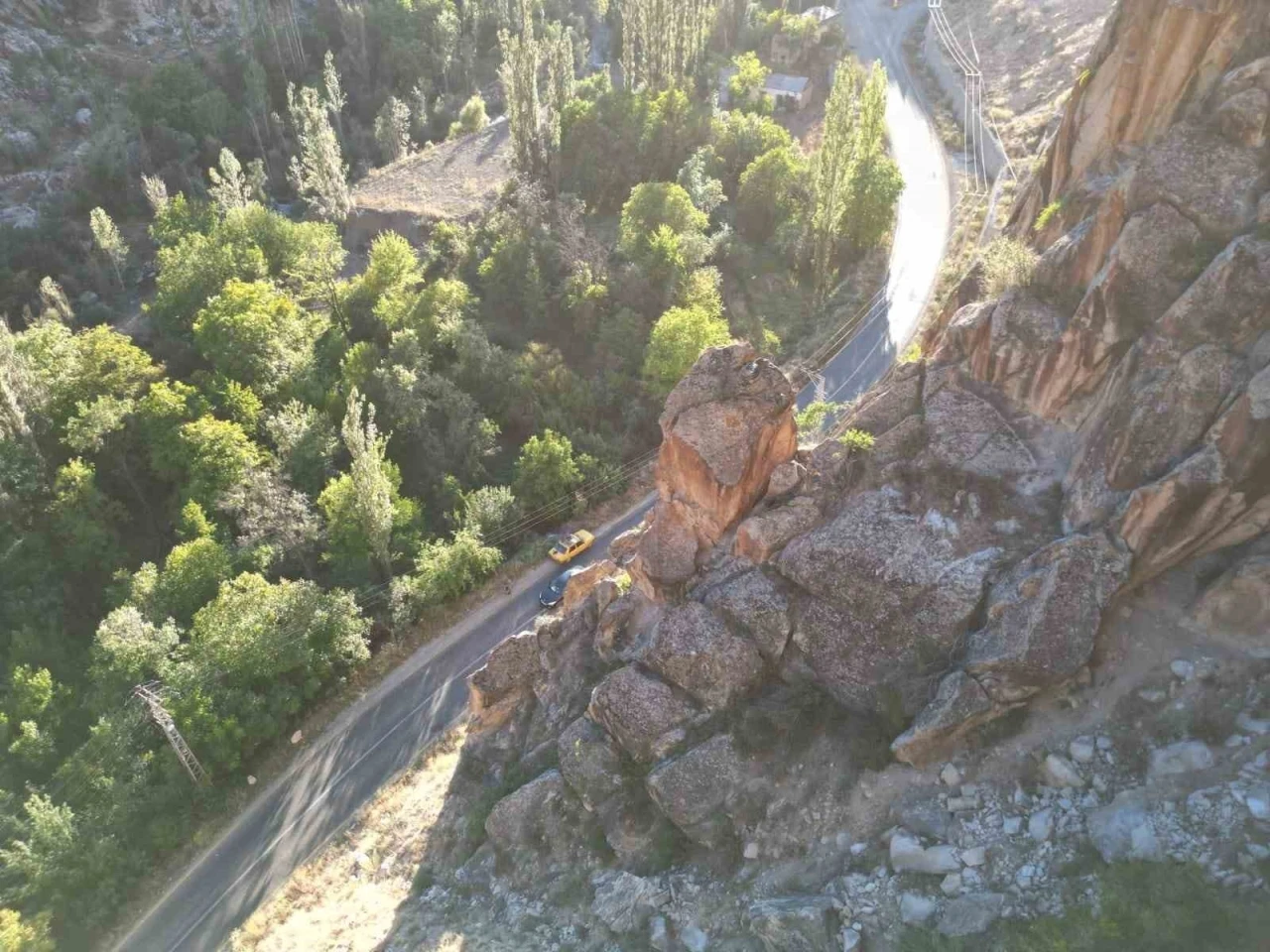 Erzurum’un Uzundere ilçesi Pehlivanlı Mahallesi’nde dağ yamacında çatlayan ve kırılan dev kayalar vatandaşları tedirgin ediyor.