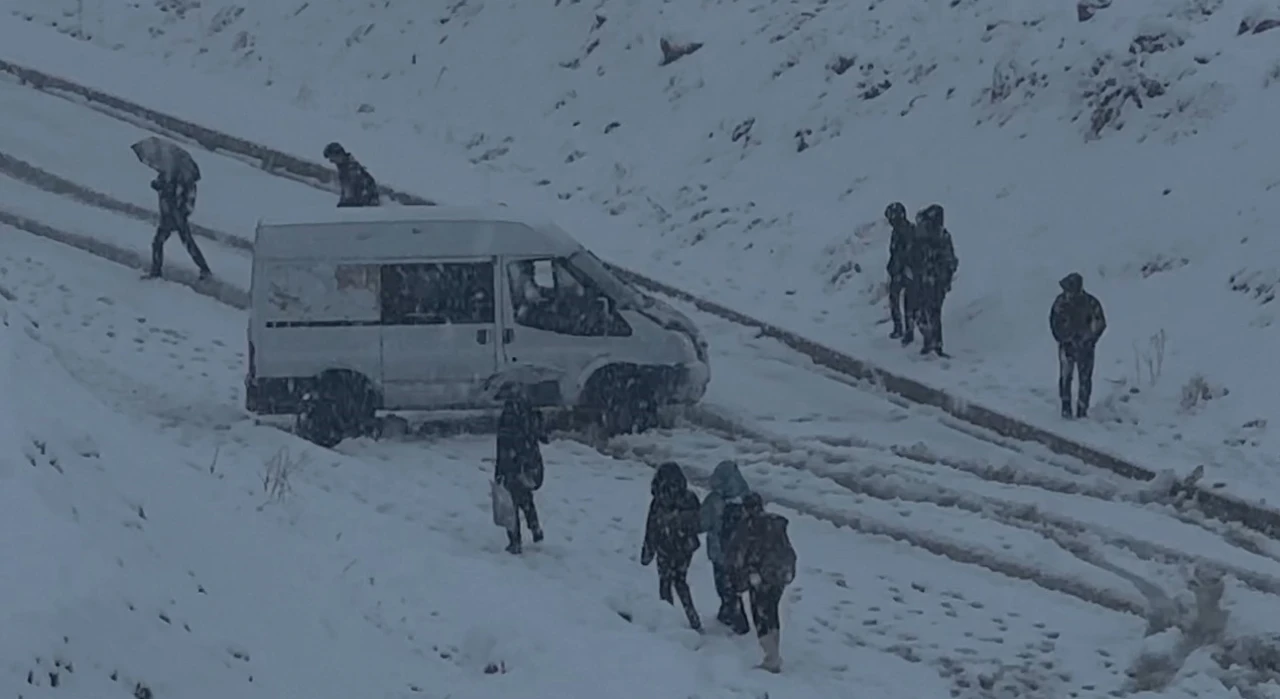 Özellikle yokuşlu yollarda ilerlemekte güçlük çeken bazı araçlar yolda mahsur kalırken, sürücülerin yardımına diğer vatandaşlar koştu.