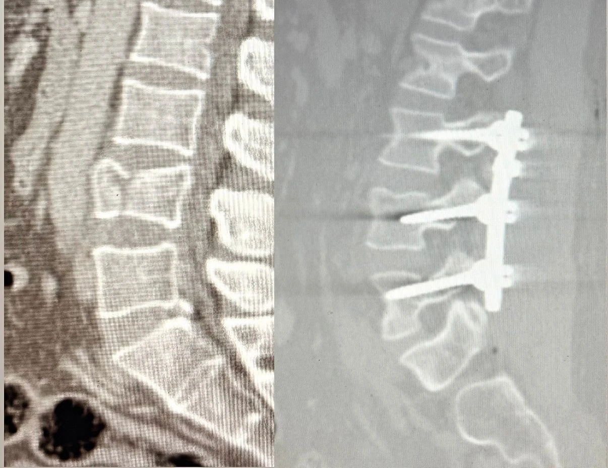 Ağrı’nın Patnos ilçesinde 2,5 metre yüksekten düşen 41 yaşındaki Tekin Maskar, bel bölgesindeki kırık nedeniyle acil servise başvurdu. Yapılan tetkiklerde omurgada çökme kırığı tespit edilmesi üzerine hasta, ortopedi uzmanları Op. Dr. Muhammed Serpi ve Op. Dr. Mustafa İçen tarafından ameliyata alındı.