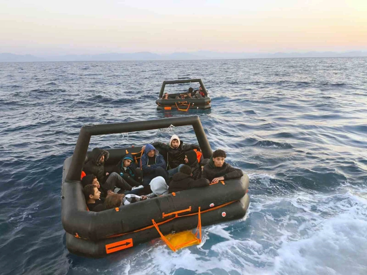 Muğla’nın Marmaris ilçesi açıklarında can salları içinde çok sayıda düzensiz göçmen tespit eden Sahil Güvenlik ekipleri, Yunanistan sahil güvenlik unsurları tarafından Türk karasularına geri itilen 15’i çocuk 27 düzensiz göçmeni kurtardı.