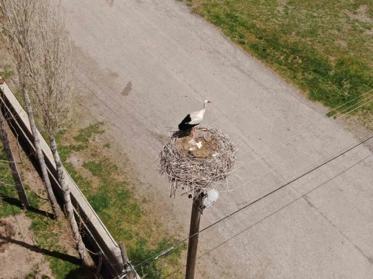 İlkbahar ile birlikte binlerce kilometre uzaklıktan Van’ın Özalp ilçesindeki yuvalarına dönen leylekler kuluçkaya yattı.