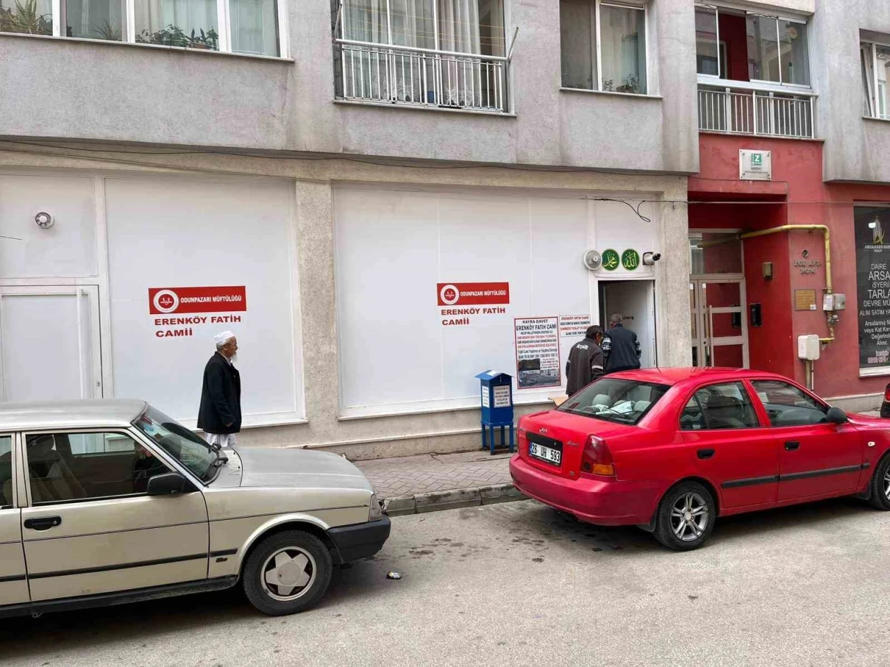 Eskişehir’de yıkılan camilerini 4 katlı bir apartmanın zemin katındaki, geçmişte fitness salonu olarak kullanılan boş alan taşıyan cemaat, ibadetlerini burada yapıyor.