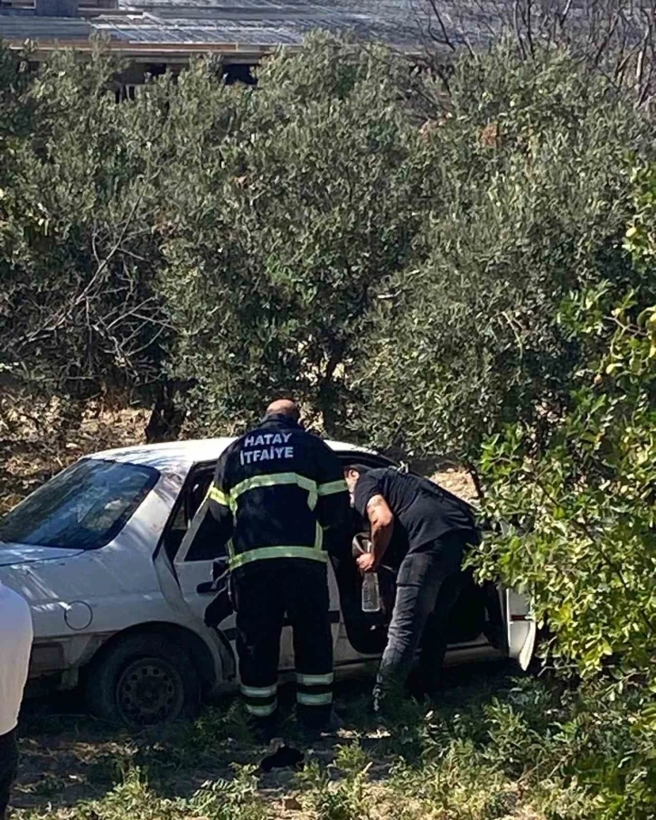 Hatay’da zeytin bahçesine uçan otomobildeki 2 kişi yaralandı.