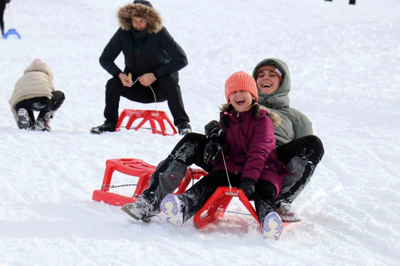 Tatilin başlaması ve yoğun kar yağışının ardından kayak pistleri, kızağa binen çocuklar ve doğanın keyfini çıkaran ziyaretçilerle dolup taştı.