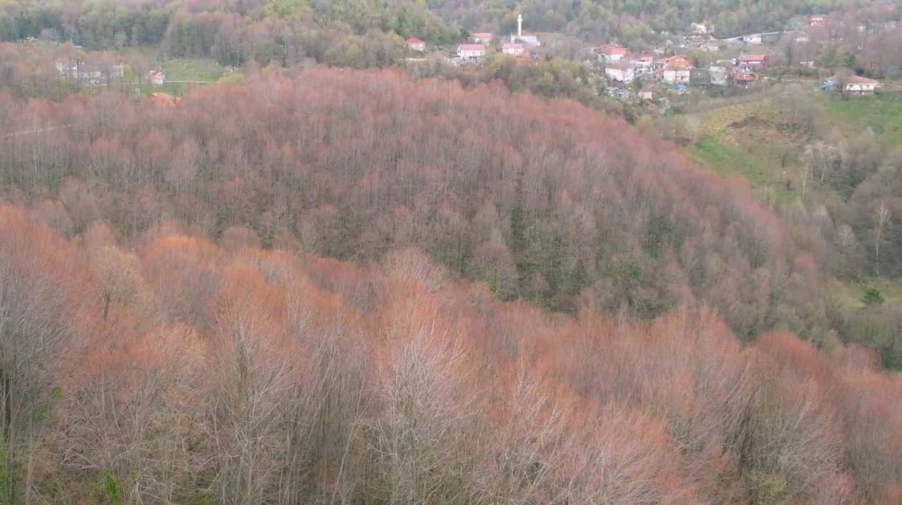 Zonguldak’ta kırmızıdan yeşile dönen ormanın renkleri ilkbaharı karşılamaya başladı.