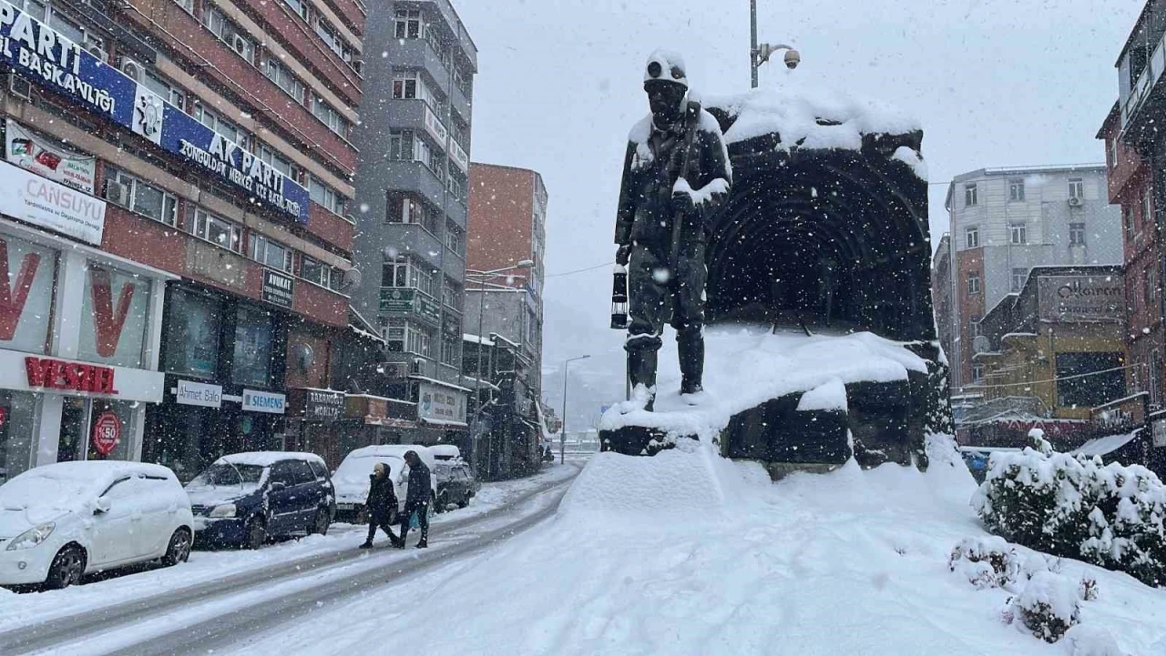 Zonguldak’ta sabah saatlerinden itibaren etkisini artıran kar yağışı nedeniyle il merkezinde vatandaşlar zor anlar yaşadı.